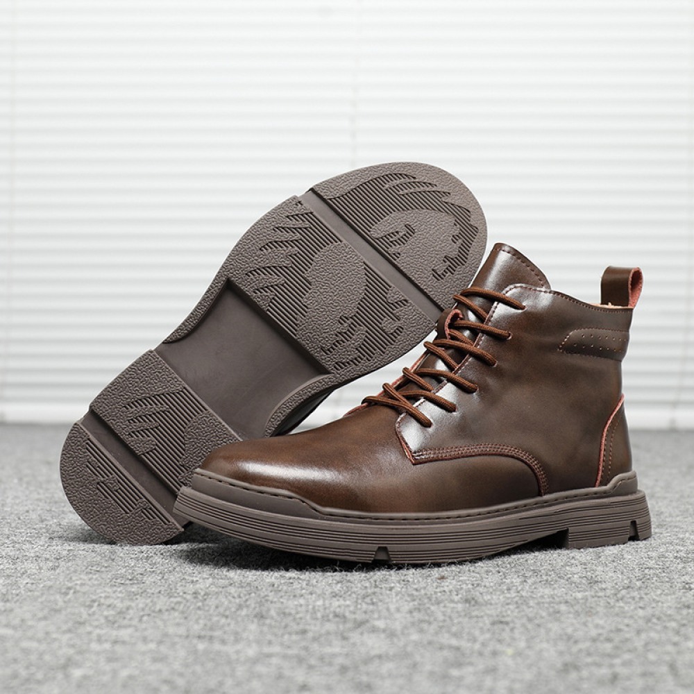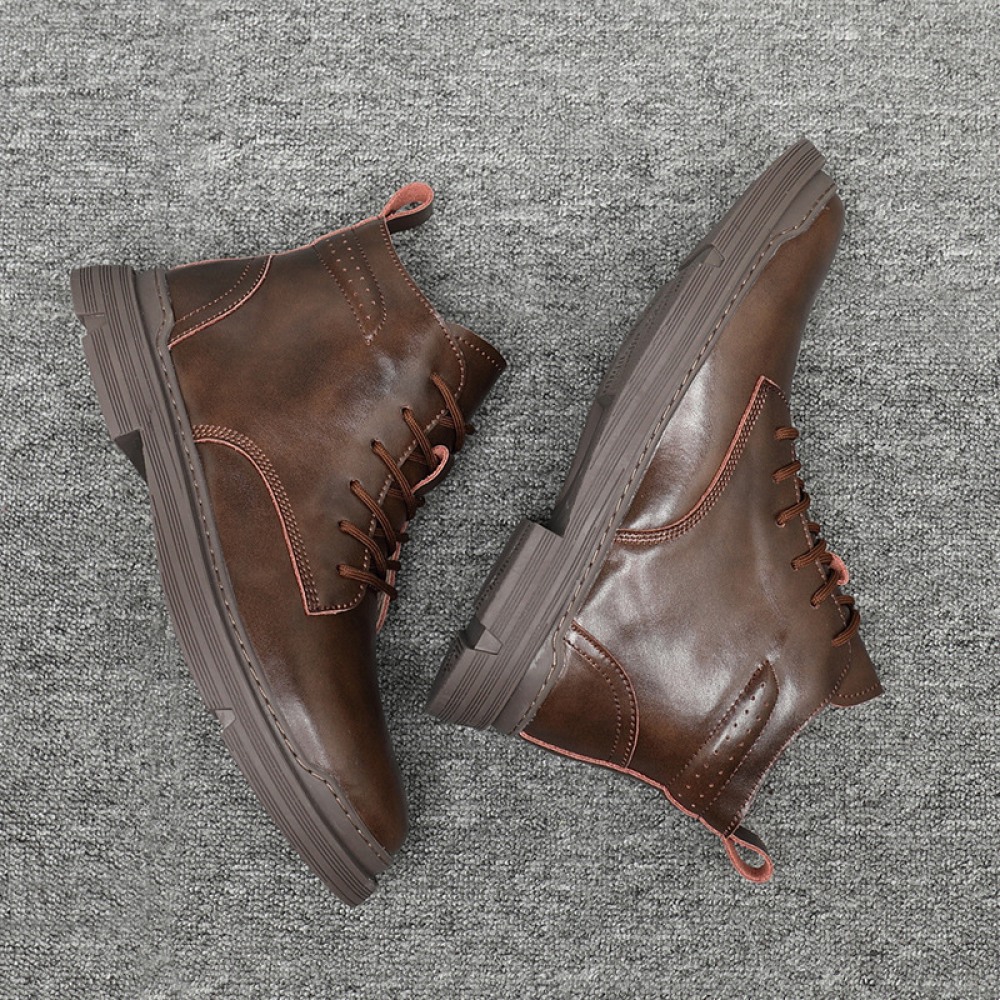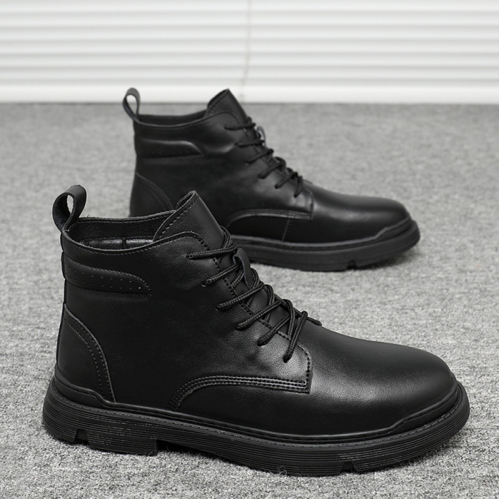 Martin Boots Men's Autumn New Leather Boots Casual Mid-Cut Tooling Boots High-Top Mens Shoes