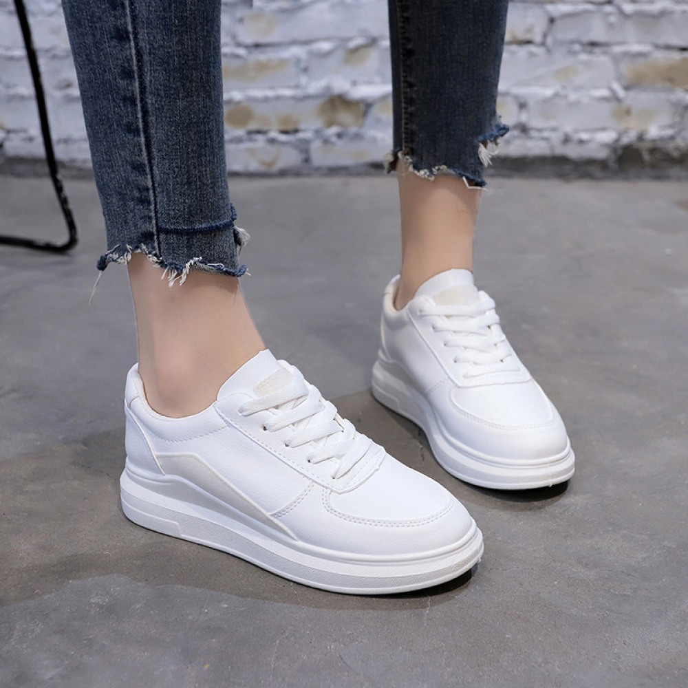 White Shoes Female Spring New Student Running Board Shoes Female Increased Sports Casual Shoes Laces